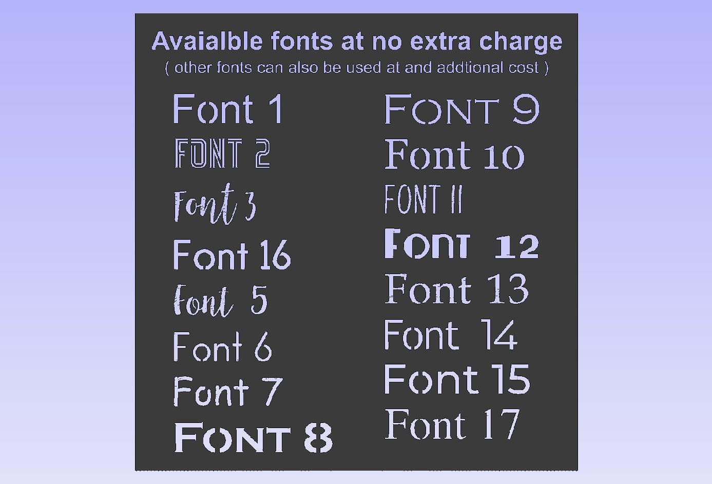 See available fonts in images above.